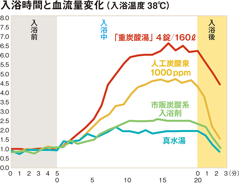 特徴 2薬用重炭酸湯があればぬるめの湯でも短時間で体が温まる