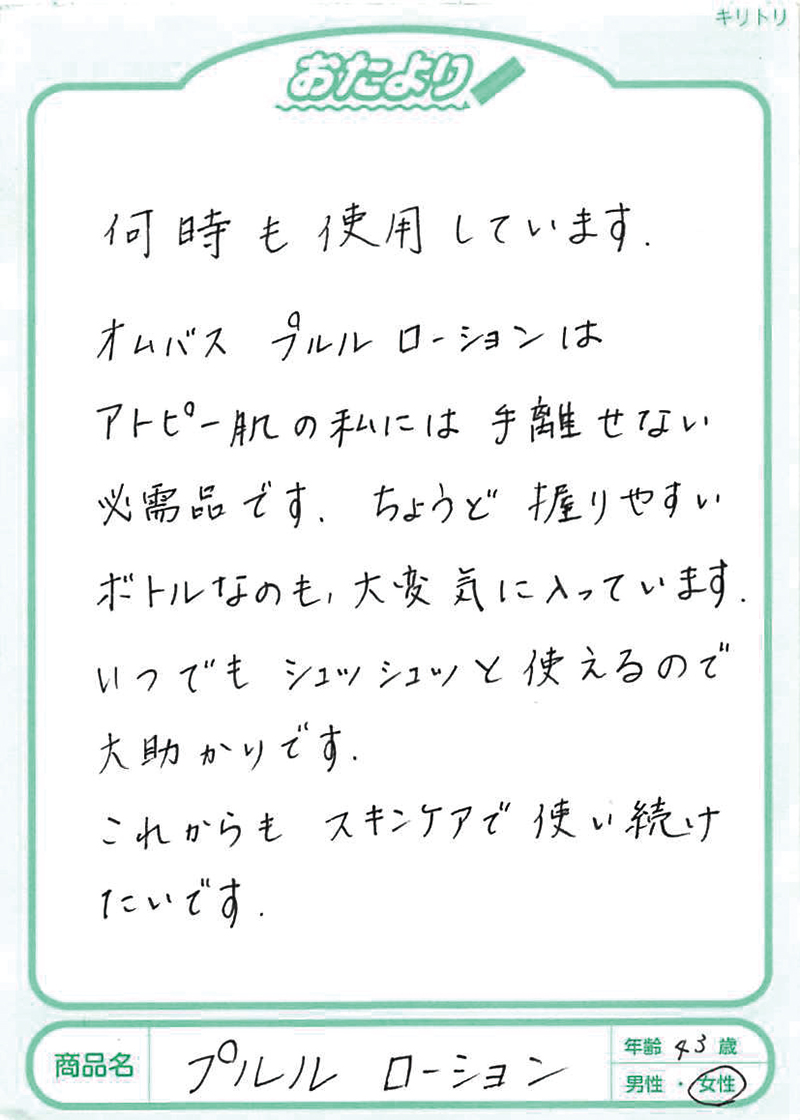 肌にやさしい植物性原料を中心にした天然保湿因子である、各種アミノ酸成分を配合。体液に近い成分で作られ、保湿・保水作用に優れています。香料、着色料は無配合、肌に刺激のない成分が厳しく選ばれました。